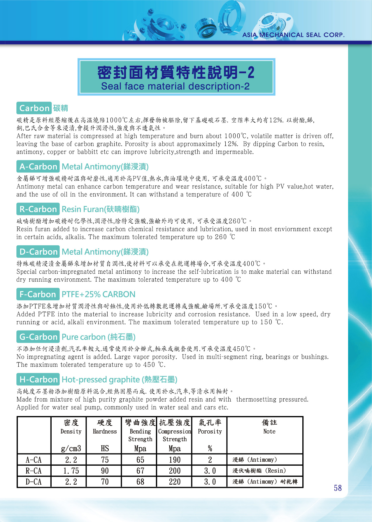 碳精(CARBON) 原料經壓縮後再經過1000度左右高溫燒結,殘留物揮發後留下基礎石墨,大約有12%空間隙,再以樹酯,銻及巴氏合金等物來填補間隙,以達到不透氣性